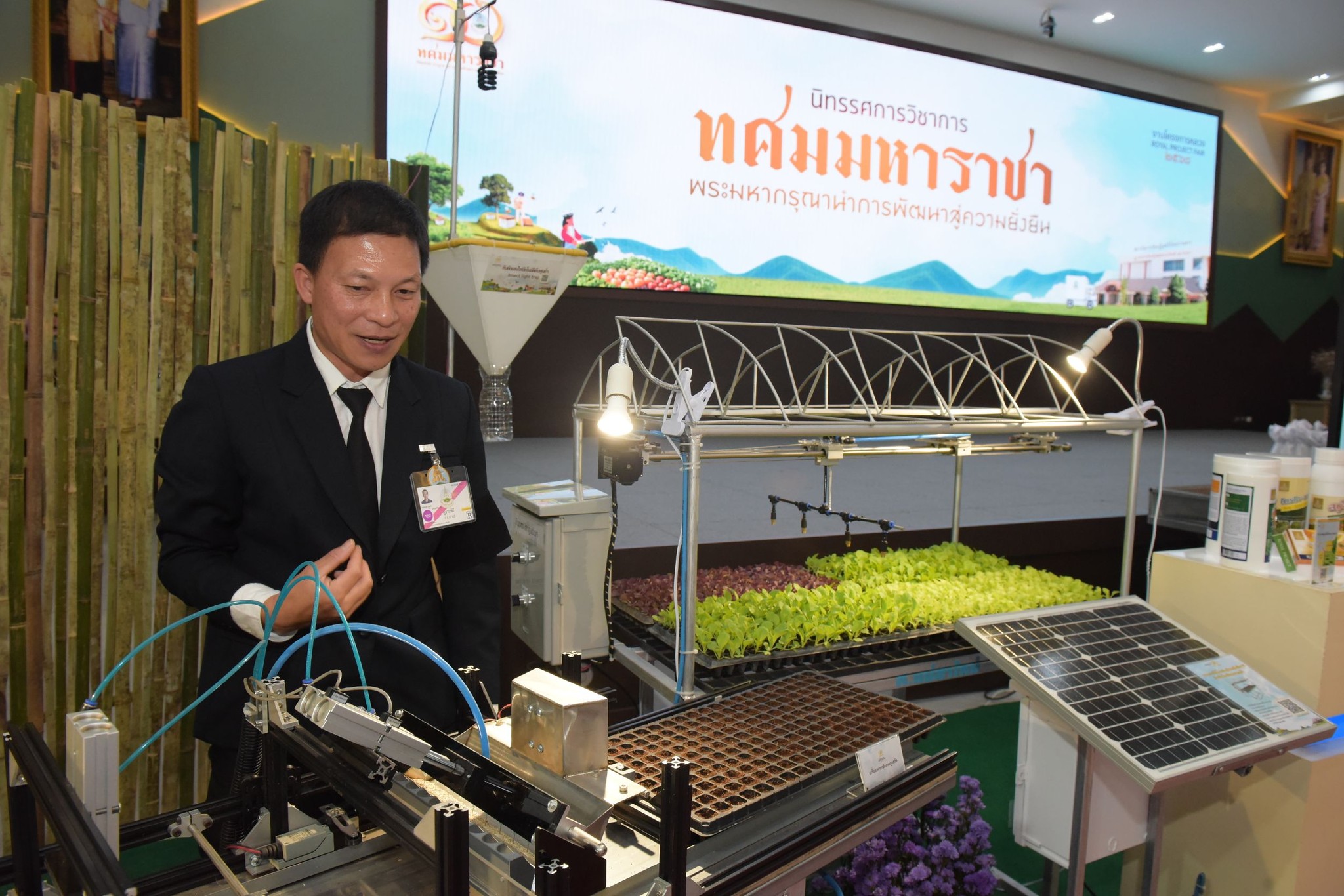 จากนั้น ทรงกดปุ่มไฟฟ้าเปิดงาน “โครงการหลวง 2568” จัดขึ้นระหว่างวันที่ 1 - 10 ธันวาคม 2568 ณ ศูนย์วิจัยและพัฒนาการเกษตรโครงการหลวง ชนกาธิเบศรดำริ จังหวัดเชียงใหม่ ในปีนี้ ภายในงานแบ่งพื้นที่การจัดงาน เป็น 2 โซน ประกอบด้วย ลานวัฒนธรรมโครงการหลวง เป็นลานจัดกิจกรรมการแสดงกลางแจ้ง และส่วนที่ 2 ภายในอาคารเรียนรู้เฉลิมพระเกียรติ 72 พรรษา มีการจัดแสดงนิทรรศการเฉลิมพระเกียรติ นิทรรศการผลสำเร็จทางวิชาการ และกิจกรรมเสวนาขยายองค์ความรู้โครงการหลวง พร้อมกิจกรรมส่งเสริมการเรียนรู้