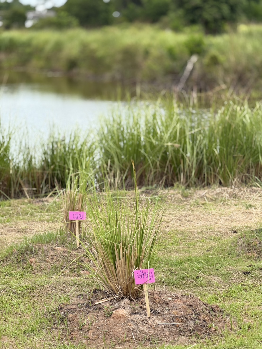 ทั้งนี้ เพื่อแก้ไขปัญหาดังกล่าว จึงได้ปลูกหญ้าแฝกสายพันธุ์สงขลา 3 รอบขอบสระและคันร่องสวน โดยหญ้าแฝกมีระบบรากลึกและหนาแน่น ช่วยยึดหน้าดิน รักษาความชุ่มชื้น ป้องกันการชะล้างพังทลาย และฟื้นฟูคุณภาพดิน ทำให้พื้นที่สามารถใช้ประโยชน์ทางการเกษตรได้อย่างยั่งยืน พร้อมทั้งเป็นตัวอย่างการประยุกต์ใช้หญ้าแฝกที่สอดคล้องกับสภาพปัญหาจริงของพื้นที่