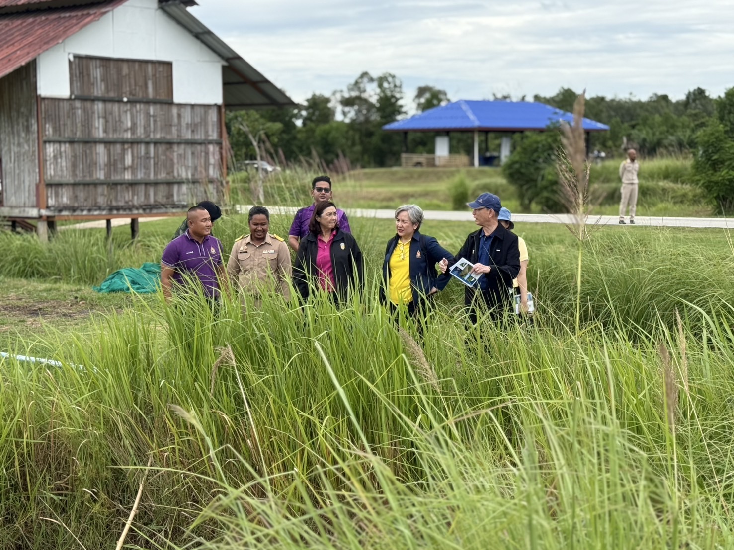 วันจันทร์ที่ 29 กันยายน 2568 นางศศิพร ปาณิกบุตร รองเลขาธิการ กปร. พร้อมด้วยพลโท ไพศาล หนูสังข์ แม่ทัพภาคที่ 4 นายพิทยากร ลิ่มทอง อนุกรรมการคัดกรองผลงานประเภทส่งเสริมการปลูกและขยายผล โครงการประกวดการพัฒนาและรณรงค์การใช้หญ้าแฝกอันเนื่องมาจากพระราชดำริ นางสาวธัญทิตตา นาครทรรพ ผู้อำนวยการกองกิจกรรมพิเศษและวิเทศสัมพันธ์ พร้อมด้วยเจ้าหน้าที่ กปร. ลงพื้นที่ติดตามผลการดำเนินงานหญ้าแฝก ณ กองพันทหารราบที่ 3 กรมทหารราบที่ 151 ค่ายกรมหลวงนราธิวาสราชนครินทร์ จังหวัดนราธิวาส ซึ่งได้รับรางวัลชนะเลิศ โล่พระราชทาน ประเภทหน่วยงานราชการและส่วนราชการที่ร่วมส่งเสริมการปลูกและขยายผลการใช้ประโยชน์จากหญ้าแฝกเพื่ออนุรักษ์ดินและน้ำ จากโครงการประกวดการพัฒนาและรณรงค์การใช้หญ้าแฝกอันเนื่องมาจากพระราชดำริ ครั้งที่ 13 (พ.ศ. 2566 - 2567) โดยมีร้อยเอก พิชาญเมธ ปานมั่น นายทหารกิจการพลเรือน และนายอัสมาน ดาเละ นักวิชาการเกษตรชำนาญการ นำชมแปลง