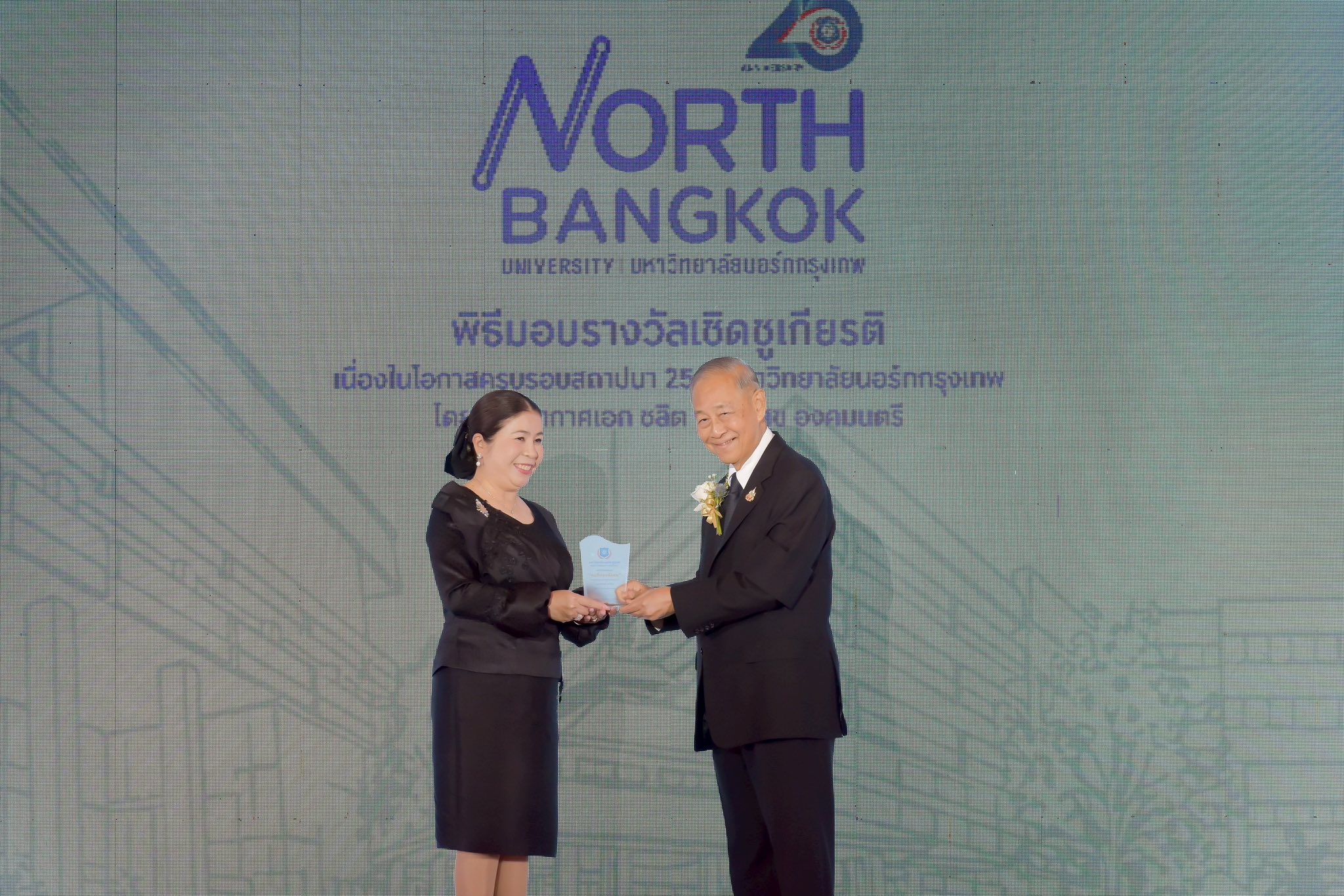 มหาวิทยาลัยนอร์ทกรุงเทพ จัดโครงการมอบโล่รางวัลเชิดชูเกียรติคนดีของสังคม เนื่องในโอกาสครบรอบ 25 ปี แห่งการสถาปนามหาวิทยาลัยนอร์ทกรุงเทพ ให้แก่บุคคลที่มีคุณสมบัติโดดเด่นและมีผลงานอันทรงคุณค่า โดยพิจารณาบุคคล องค์กร และสื่อมวลชนที่ทำคุณประโยชน์ต่อสังคม ทั้ง 4 ด้าน ได้แก่ ด้านนวัตกรรมและเทคโนโลยี ด้านภูมิปัญญาและการพัฒนาท้องถิ่น ด้านจิตอาสาเพื่อสังคมและสิ่งแวดล้อม และด้านการศึกษาและการส่งเสริมสุขภาพ