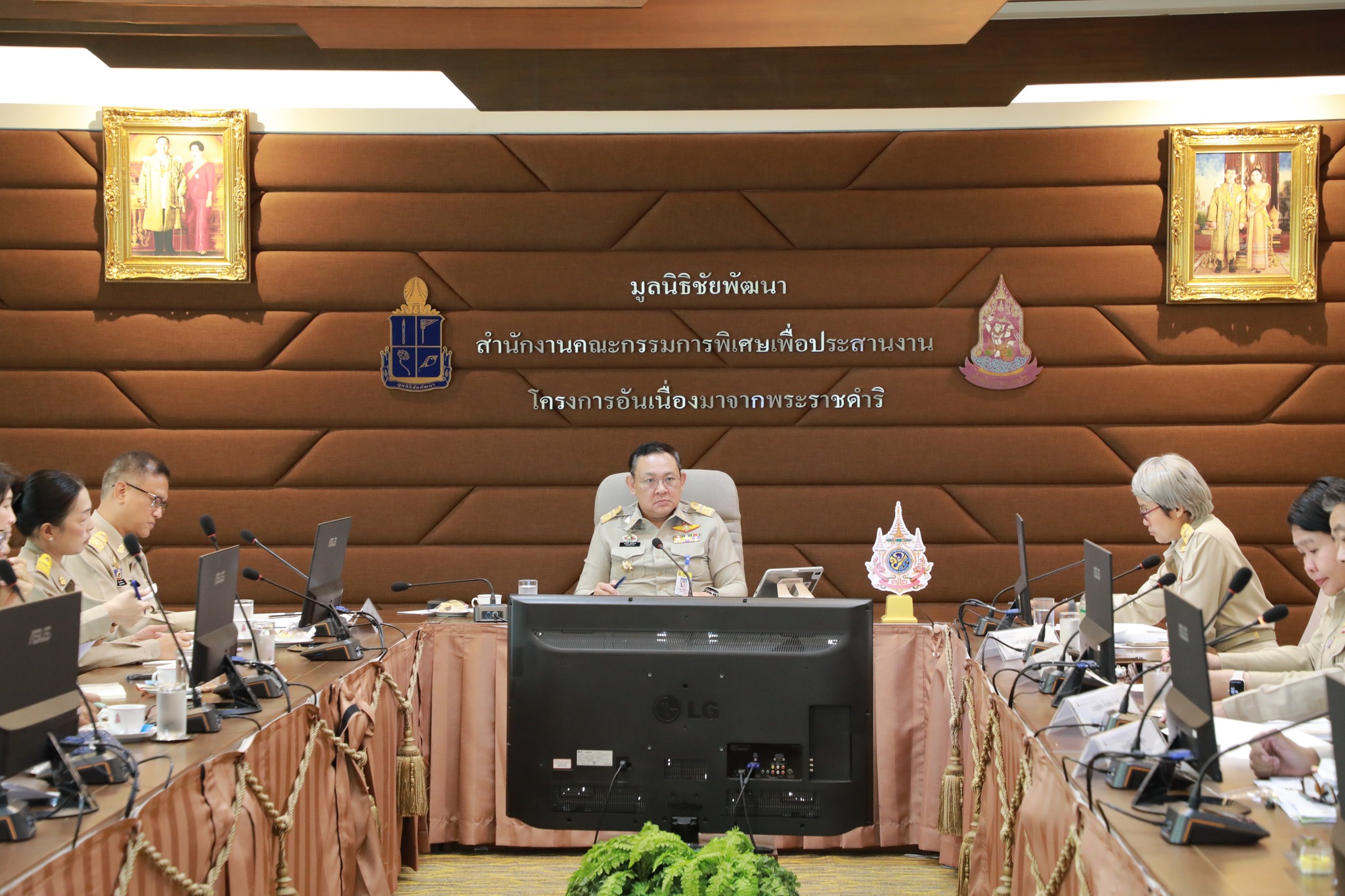 ในที่ประชุมได้รายงานในเรื่องต่างๆ ประกอบด้วย การรับเสด็จ การติดตาม และขับเคลื่อนงานโครงการอันเนื่องมาจากพระราชดำริ งานฎีกา การวิเคราะห์โครงการ ในปีงบประมาณ 2569 พร้อมทั้งติดตามความก้าวหน้าผลการดำเนินงาน ของศูนย์ศึกษาการพัฒนาอันเนื่องมาจากพระราชดำริ 6 แห่ง และศูนย์สาขา