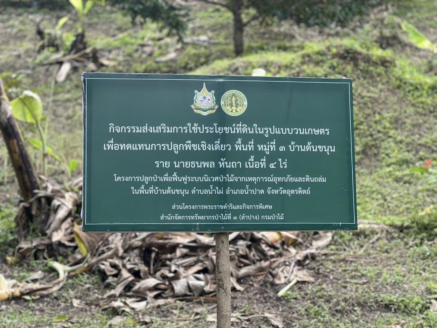 โครงการปลูกป่าเพื่อฟื้นฟูและพัฒนาระบบนิเวศป่าไม้ จากเหตุการณ์อุทกภัยและดินถล่ม บ้านต้นขนุน ตำบลน้ำไผ่ อำเภอน้ำปาด จังหวัดอุตรดิตถ์ (กรมป่าไม้) ได้รับรางวัลชมเชย ประเภทชุมชน/หน่วยงาน จากโครงการประกวดการพัฒนาและรณรงค์การใช้หญ้าแฝกอันเนื่องมาจากพระราชดำริ ครั้งที่ 13 (พ.ศ. 2566-2567) ประเภทการปลูกและส่งเสริมการปลูก ซึ่งเมื่อปี 2554 บ้านต้นขนุน เป็นพื้นที่ที่ประสบภัยพิบัติดินถล่ม ต่อมา กรมป่าไม้ ได้ดำเนินโครงการปลูกป่า เพื่อฟื้นฟูและพัฒนาระบบนิเวศ โดยการน้อมนำแนวพระราชดำริ การปลูกป่า 3 อย่าง ประโยชน์ 4 อย่าง และนำหญ้าแฝกมาขยายผล ให้แก่ชุมชน ปัจจุบันชุมชนมีความเข้มแข็ง และมีความเป็นอยู่ที่ดีขึ้น