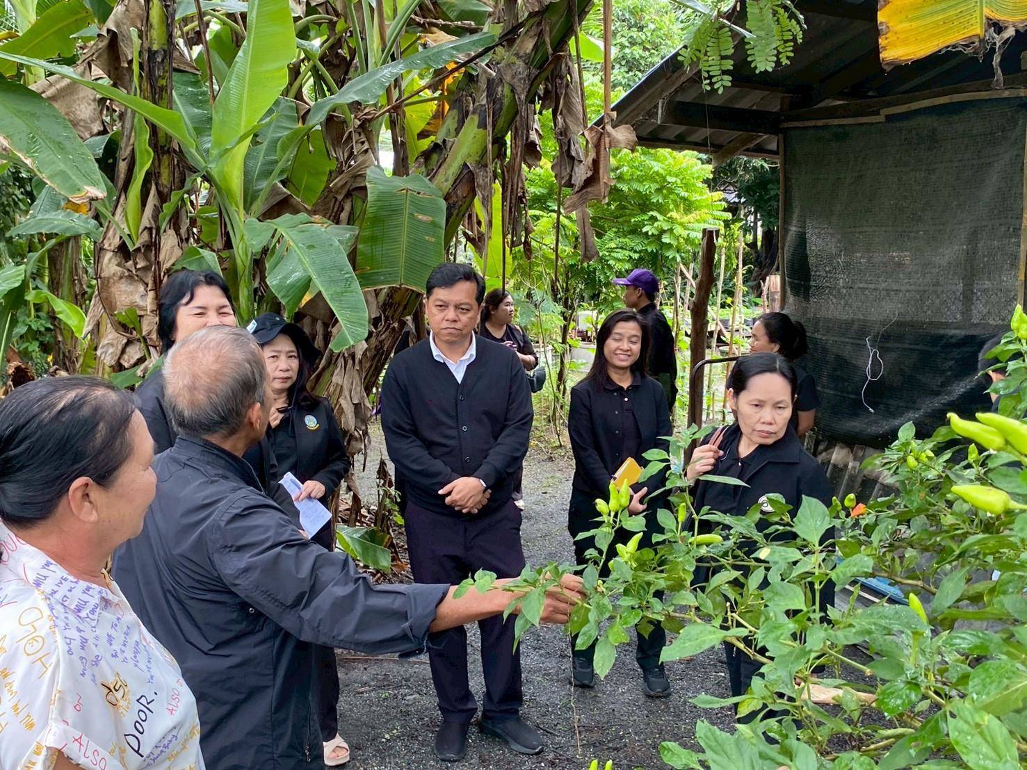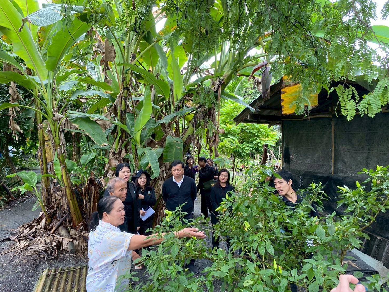 ช่วงบ่าย คณะเดินทางไปยังศูนย์เรียนรู้เครือข่ายศูนย์ศึกษาการพัฒนาห้วยฮ่องไคร้อันเนื่องมาจากพระราชดำริ ตำบลบ้านสหกรณ์ อำเภอแม่ออน จังหวัดเชียงใหม่ ของนางสมศรี เดชคุณมาก เป็นเกษตรกรต้นแบบด้านเกษตรผสมผสาน ได้นำองค์ความรู้จากศูนย์ศึกษาการพัฒนาห้วยฮ่องไคร้ฯ มาประยุกต์ใช้ในพื้นที่ของตนเอง จากเดิมที่ทำการเกษตรเชิงเดี่ยว ปัจจุบันหันมาเลี้ยงปศุสัตว์โดยเฉพาะการเลี้ยงไก่ไข่ ร่วมกับการปลูกผักสวนครัว เช่น ผักหวาน ผักเชียงดา ผักกาดหิ่น ผักชีฝรั่ง ถั่วฝักยาว พริกนรก เป็นต้น และมีการเริ่มเพาะเห็ดเศรษฐกิจ หรือเห็ดนางฟ้า เพื่อจัดจำหน่าย สามารถสร้างอาชีพและเกษตรกรมีรายได้ที่มั่นคง ช่วยยกระดับคุณภาพชีวิตให้ดีขึ้น