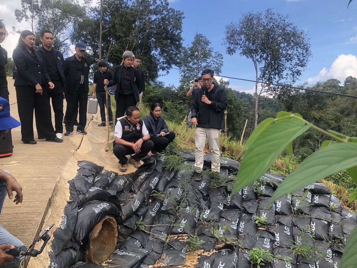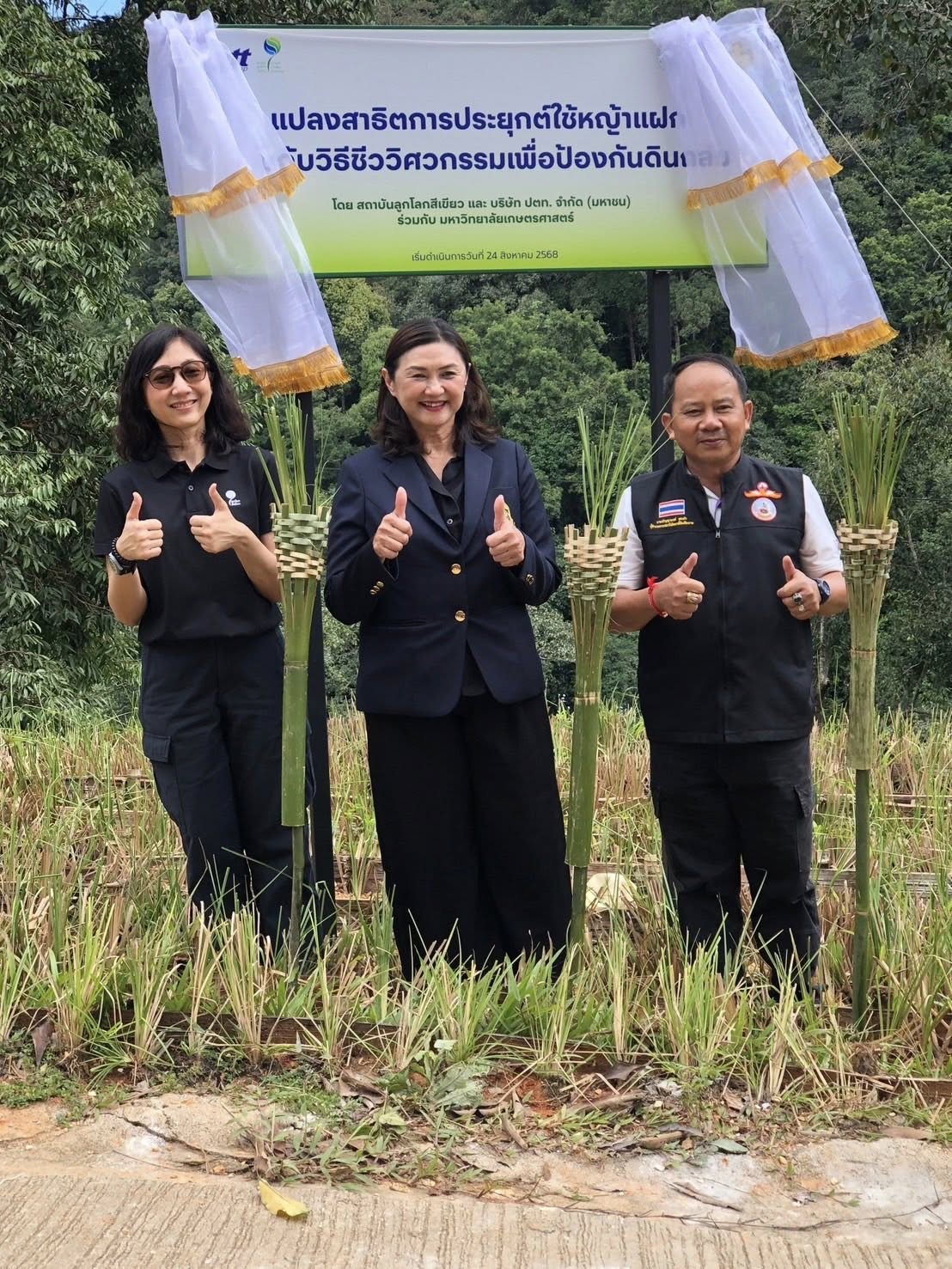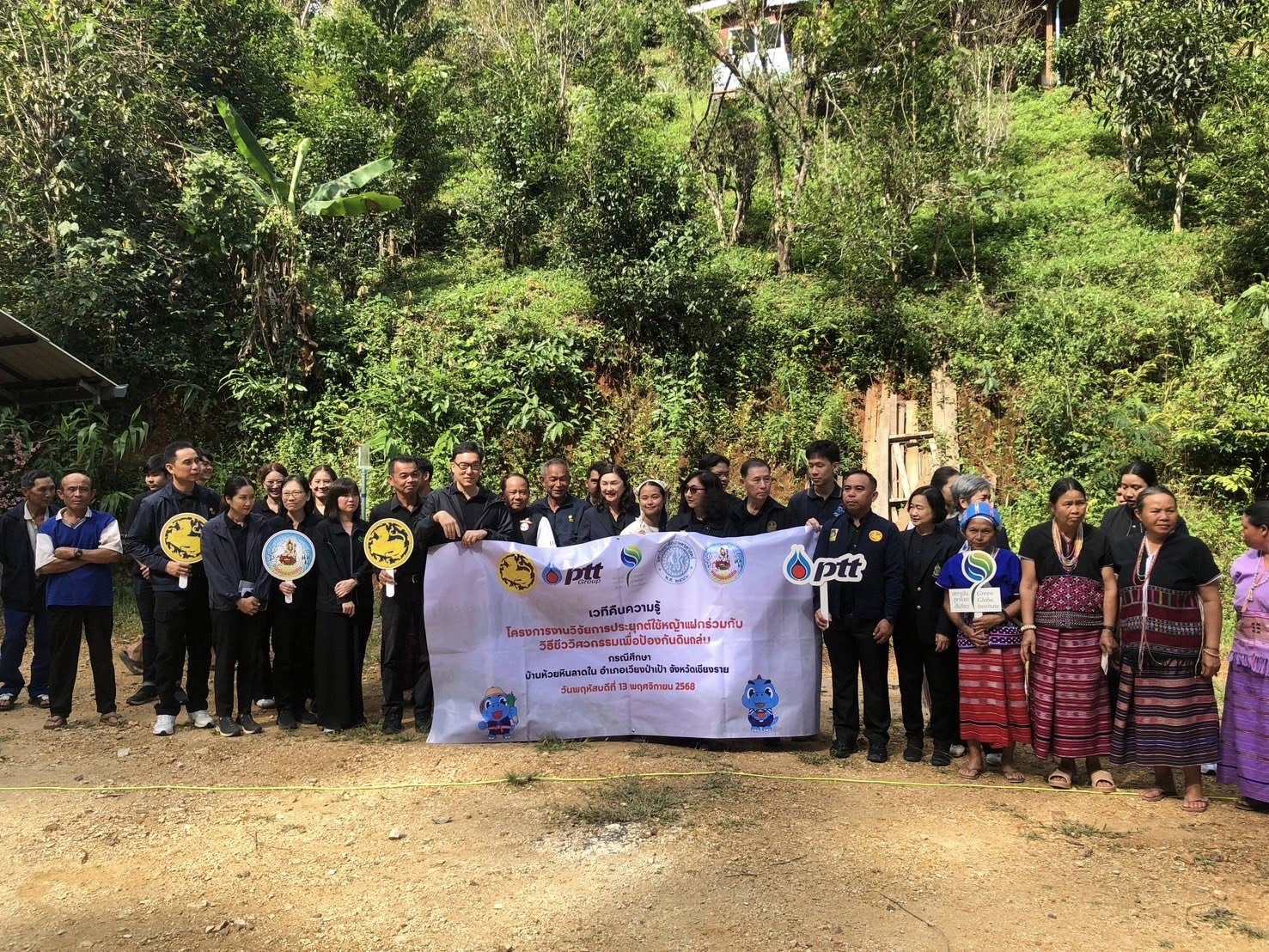 วันพฤหัสบดีที่ 13 พฤศจิกายน 2568 ระหว่างเวลา นางศศิพร ปาณิกบุตร รองเลขาธิการ กปร. พร้อมด้วยนางศิริลักษณ์ ทัสนารมย์ ที่ปรึกษาด้านการประสานงานโครงการอันเนื่องมาจากพระราชดำริ ดร.พิทยากร ลิ่มทอง อนุกรรมการด้านวิชาการและติดตามประเมินผลโครงการพัฒนาและรณรงค์การใช้หญ้าแฝกอันเนื่องมาจากพระราชดำริ และเจ้าหน้าที่จากสำนักงาน กปร. เข้าร่วมกิจกรรมเวทีคืนความรู้การประยุกต์ใช้หญ้าแฝกร่วมกับวิธีชีววิศวกรรมเพื่อป้องกันดินถล่ม ซึ่งจัดโดยสถาบันลูกโลกสีเชียว บริษัท ปตท. จำกัด (มหาชน) ณ พื้นที่บ้านห้วยหินลาดใน