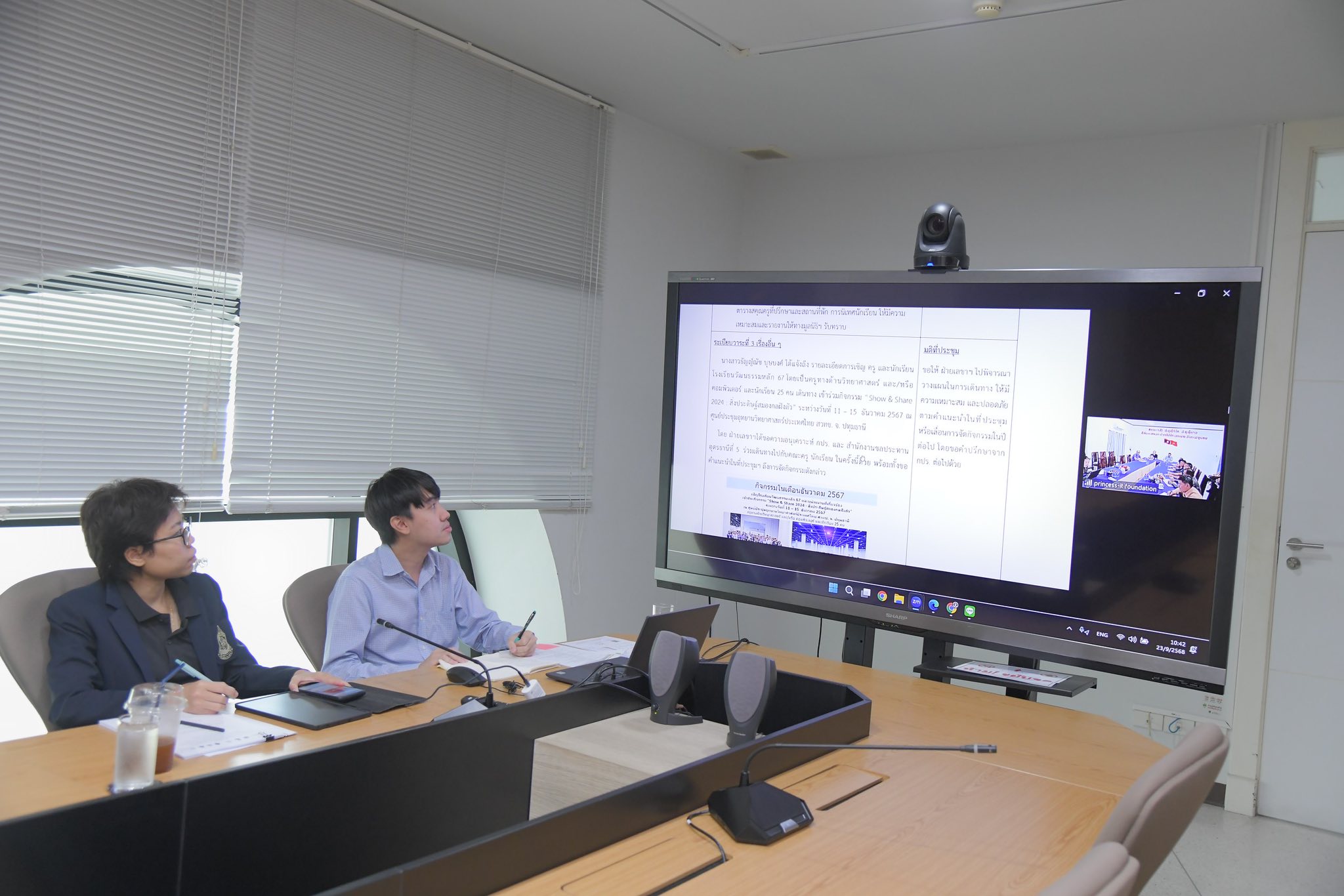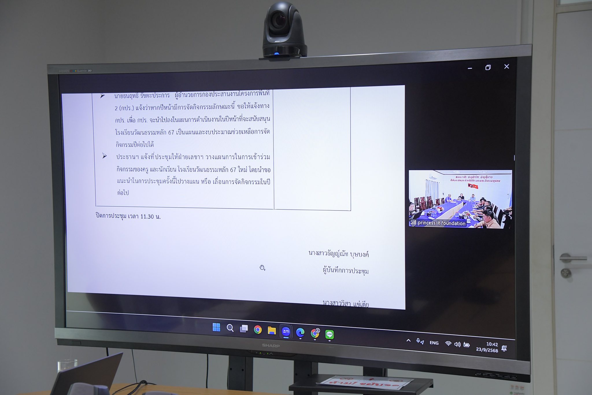 วันอังคารที่ 23 กันยายน 2568 นางสุพร ตรีนรินทร์ เลขาธิการ กปร. และเจ้าหน้าที่สำนักงาน กปร. ร่วมประชุม โดยมี ศ.ดร.ไพรัช ธัชยพงษ์ และคณะทำงาน ฝ่ายไทย และคณะครูจากสาธารณะรัฐประชาธิปไตยประชาชนลาว เข้าร่วมประชุม ผ่านระบบออนไลน์
