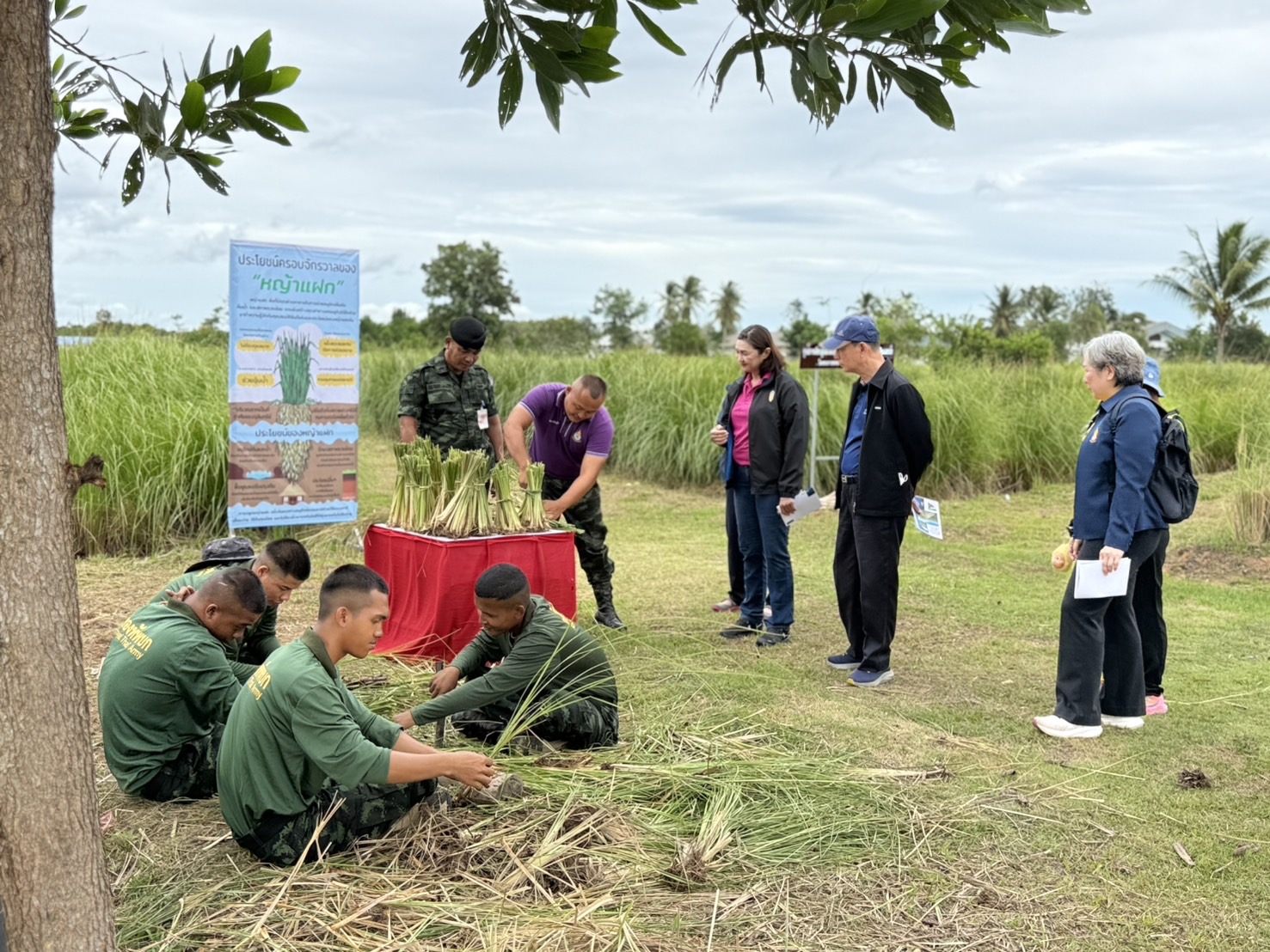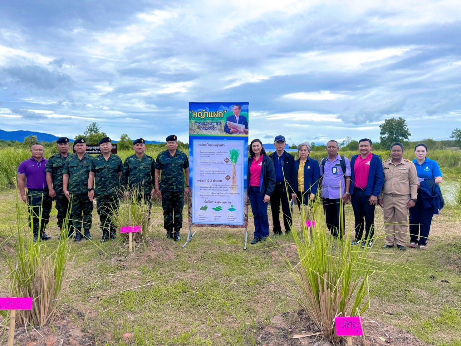 วันจันทร์ที่ 29 กันยายน 2568 นางศศิพร ปาณิกบุตร รองเลขาธิการ กปร. พร้อมด้วยพลโท ไพศาล หนูสังข์ แม่ทัพภาคที่ 4 นายพิทยากร ลิ่มทอง อนุกรรมการคัดกรองผลงานประเภทส่งเสริมการปลูกและขยายผล โครงการประกวดการพัฒนาและรณรงค์การใช้หญ้าแฝกอันเนื่องมาจากพระราชดำริ นางสาวธัญทิตตา นาครทรรพ ผู้อำนวยการกองกิจกรรมพิเศษและวิเทศสัมพันธ์ พร้อมด้วยเจ้าหน้าที่ กปร. ลงพื้นที่ติดตามผลการดำเนินงานหญ้าแฝก ณ กองพันทหารราบที่ 3 กรมทหารราบที่ 151 ค่ายกรมหลวงนราธิวาสราชนครินทร์ จังหวัดนราธิวาส ซึ่งได้รับรางวัลชนะเลิศ โล่พระราชทาน ประเภทหน่วยงานราชการและส่วนราชการที่ร่วมส่งเสริมการปลูกและขยายผลการใช้ประโยชน์จากหญ้าแฝกเพื่ออนุรักษ์ดินและน้ำ จากโครงการประกวดการพัฒนาและรณรงค์การใช้หญ้าแฝกอันเนื่องมาจากพระราชดำริ ครั้งที่ 13 (พ.ศ. 2566 - 2567) โดยมีร้อยเอก พิชาญเมธ ปานมั่น นายทหารกิจการพลเรือน และนายอัสมาน ดาเละ นักวิชาการเกษตรชำนาญการ นำชมแปลง