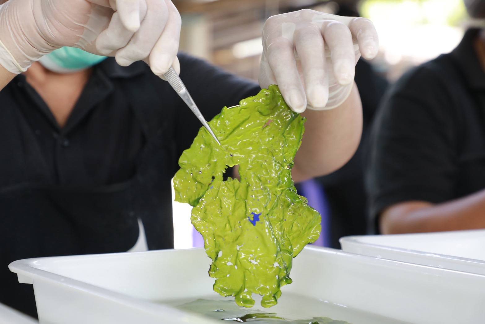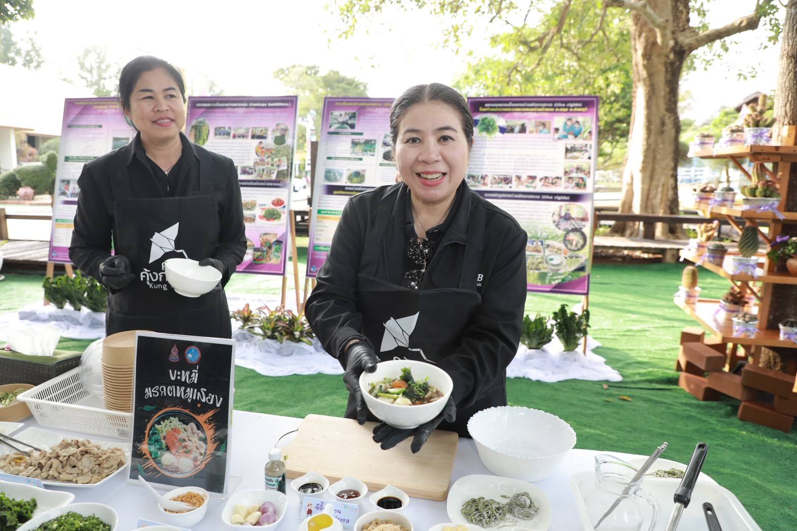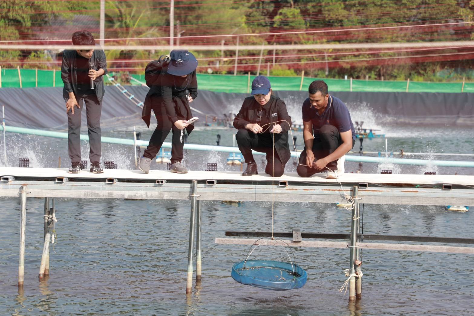 ต่อมา คณะเยี่ยมชมงานเพาะเลี้ยงสาหร่ายทะเล ชมแปลงสาธิตการเพาะเลี้ยงสาหร่ายพวงองุ่นและสาหร่ายผักกาดทะเล ที่ได้รับความนิยมในตลาดอาหารสุขภาพ รวมทั้งเยี่ยมชมการเลี้ยงสาหร่ายร่วมกับสัตว์น้ำเศรษฐกิจ เช่น ปูทะเลและปลากระบอกดำ ในการบริหารจัดการฟาร์มเชิงนิเวศที่เป็นมิตรกับสิ่งแวดล้อม และเป็นต้นแบบอาชีพชุมชนที่ยั่งยืน
