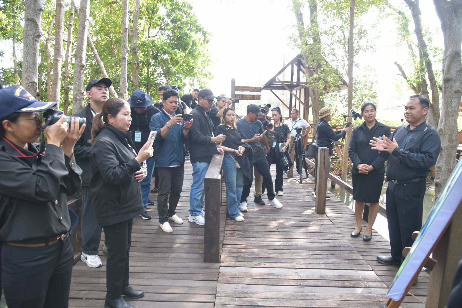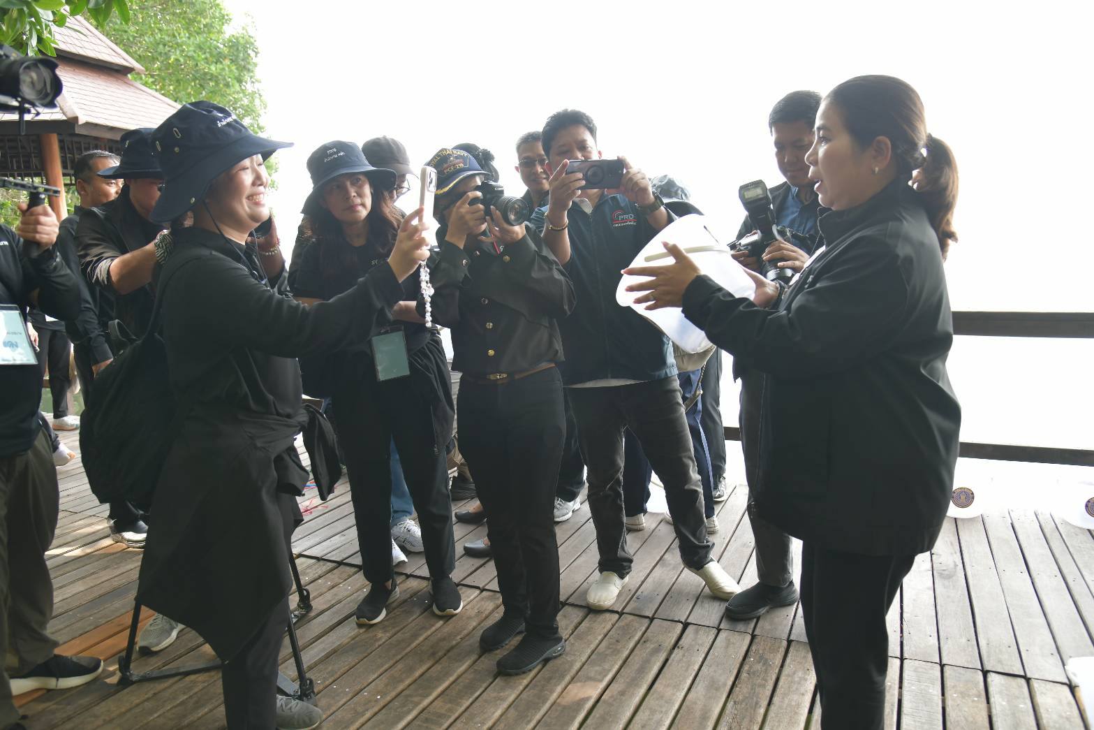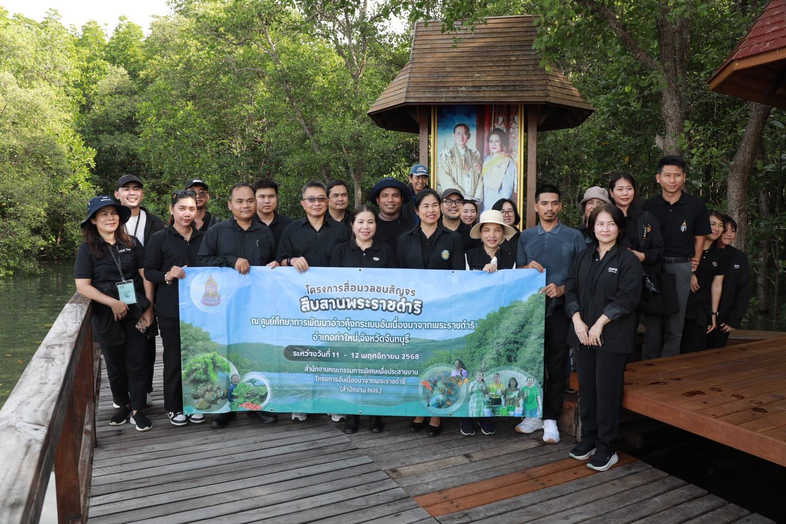 วันอังคารที่ 11 พฤศจิกายน 2568 สำนักงาน กปร. จัดโครงการ “สื่อมวลชนสัญจร สืบสานพระราชดำริ ปี 2568” นำคณะสื่อมวลชนเยี่ยมชมผลสำเร็จการดำเนินงานของศูนย์ศึกษาการพัฒนาอ่าวคุ้งกระเบนอันเนื่องมาจากพระราชดำริ จังหวัดจันทบุรี การพัฒนา “จากยอดเขา สู่ท้องทะเล” ที่มุ่งเน้นการฟื้นฟูทรัพยากรธรรมชาติและพัฒนาอาชีพของราษฎรอย่างยั่งยืน ตั้งแต่ต้นน้ำจนถึงทะเล ปัจจุบันศูนย์ฯ ได้กลายเป็น “พิพิธภัณฑ์ธรรมชาติที่มีชีวิต” และแหล่งเรียนรู้เชิงนิเวศที่สำคัญของประเทศ โดยมีนายมนต์สิทธิ์ ไพศาลธนวัฒน์ ผู้ว่าราชการจังหวัดจันทบุรี ให้การต้อนรับพร้อมกล่าวถึงแนวทางการขับเคลื่อนโครงการอันเนื่องมาจากพระราชดำริในพื้นที่จังหวัดจันทบุรี นางสุพร ตรีนรินทร์ เลขาธิการ กปร. กล่าวถึงการจัดโครงการครั้งนี้ มีเป้าหมายเพื่อเผยแพร่ผลสำเร็จและองค์ความรู้จากโครงการอันเนื่องมาจากพระราชดำริให้แก่สื่อมวลชนแขนงต่าง ๆ ซึ่งสื่อมวลชนคือกำลังสำคัญในการถ่ายทอดพระราชปณิธานการพัฒนา สู่การรับรู้ของสังคมอย่างถูกต้องและกว้างขวางต่อไป นางกัญญารัตน์ สุนทรา ผู้อำนวยการศูนย์ศึกษาการพัฒนาอ่าวคุ้งกระเบนอันเนื่องมาจากพระราชดำริ รายงานผลการดำเนินงานของศูนย์ศึกษาการพัฒนาอ่าวคุ้งกระเบนอันเนื่องมาจากพระราชดำริ และการขยายผลสู่การปฏิบัติใช้ของราษฎรพื้นที่