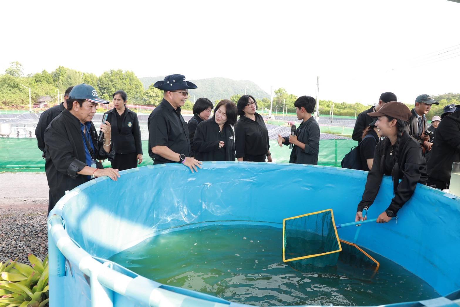 ในช่วงบ่าย คณะสื่อมวลชนเยี่ยมชมพื้นที่การดำเนินงานภายในศูนย์ศึกษาการพัฒนาอ่าวคุ้งกระเบนฯ ณ งานการผลิตพันธุ์สัตว์น้ำชายฝั่ง เพื่อการอนุรักษ์ฟื้นฟูทรัพยากรสิ่งแวดล้อม และเพิ่มทรัพยากรสัตว์น้ำชายฝั่ง รวมทั้งส่งเสริมการเพาะเลี้ยงสัตว์น้ำเศรษฐกิจที่ปลอดภัยและเป็นมิตรกับสิ่งแวดล้อม โดยมีกิจกรรมสาธิตการเพาะเลี้ยงและขยายพันธุ์สัตว์น้ำ เช่น ปลากะพงขาว หอยชักตีน และปลาการ์ตูน ซึ่งได้รับความนิยมในกลุ่มสัตว์น้ำเศรษฐกิจสวยงาม ต่อมาสื่อมวลชนได้เยี่ยมชมแปลงสาธิตการทำเกษตรแบบผสมผสานและการปลูกพืชผักตามฤดูกาล อีกหนึ่งความสำเร็จในการพัฒนาปรับปรุงพื้นที่ดินตะกอนชายฝั่งที่เคยเสื่อมโทรมให้สามารถทำการเกษตรได้ ด้วยหลักการฟื้นฟูดินควบคู่กับการบริหารจัดการน้ำ พร้อมกับการเลือกชนิดพืชที่เหมาะสมกับสภาพดินและภูมิสังคม นับเป็นตัวอย่างการสร้างความมั่นคงทางอาหารให้แก่ชุมชน จากนั้นคณะสื่อมวลชนจะได้สัมผัสและเยี่ยมชมความสมบูรณ์ของผืนป่าชายเลน ณ ศูนย์ศึกษาธรรมชาติป่าชายเลน ซึ่งเป็นพระราชดำริเริ่มแรกในการก่อตั้งศูนย์แห่งนี้ โดยรับฟังแนวทางการอนุรักษ์และฟื้นฟูป่าชายเลนจากเจ้าหน้าที่ป่าไม้ พร้อมทั้งสัมผัสความอุดมสมบูรณ์ตามเส้นทางศึกษาธรรมชาติบนสะพานไม้ ระยะทาง 1,600 เมตร และร่วมกันปล่อยพันธุ์สัตว์น้ำคืนสู่ทะเล ป่าชายเลนผืนนี้