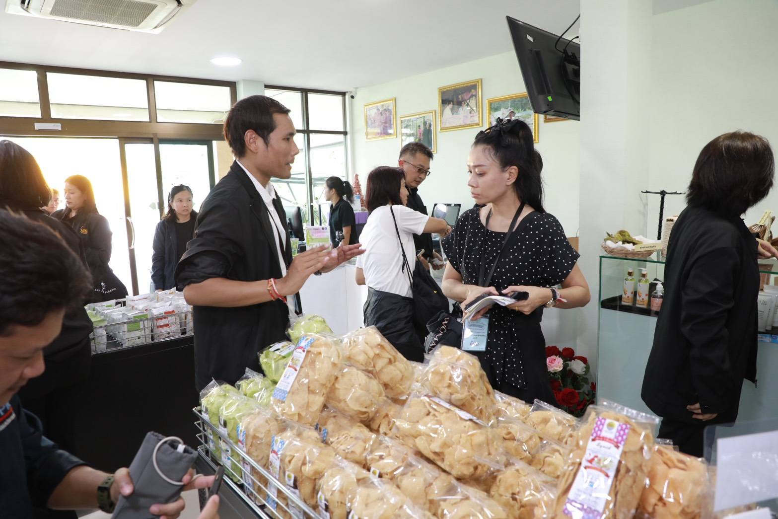นอกจากนี้ยังได้เยี่ยมชม “อาคารสิริพัฒนภัณฑ์” อีกหนึ่งโครงการปลายน้ำ ซึ่งเป็นสถานที่รวมผลิตภัณฑ์ของศูนย์ฯ เกษตรกรเครือข่าย และสินค้าจากชุมชน เพื่อสร้างรายได้และความมั่นคงให้แก่ชุมชนในระดับฐานราก โดยได้รับพระมหากรุณาธิคุณ พระราชทานชื่ออาคารจาก สมเด็จพระกนิษฐาธิราชเจ้า กรมสมเด็จพระเทพรัตนราชสุดาฯ สยามบรมราชกุมารี “สิริพัฒนภัณฑ์” ซึ่งมีความหมายว่า “ผลิตภัณฑ์แห่งความเจริญรุ่งเรืองอันเป็นมงคล” หรือ “สิ่งของที่นำมาซึ่งความเจริญ” โดยมีสินค้าและผลิตภัณฑ์คุณภาพดี ราคาถูก จัดจำหน่ายแก่ประชาชนทั่วไป เช่น ผลิตภัณฑ์แปรรูปจากสาหร่ายทะเล อาทิ บะหมี่สาหร่ายผักกาดทะเล ผงโรยข้าวสาหร่ายผักกาดทะเลผักม้วนสาหร่ายผักกาดทะเล เซรั่มสารสกัดจากสาหร่ายทะเล กะปิแท้และน้ำปลาแท้จากชุมชน ผักสดปลอดสารพิษจากเกษตรกรเครือข่าย งานหัตถกรรมเครื่องจักรสานจากกลุ่มแม่บ้าน เป็นต้น รวมทั้งชมการสาธิตการทำอาหารจากผลิตภัณฑ์แปรรูปต่าง ๆ อีกด้วย