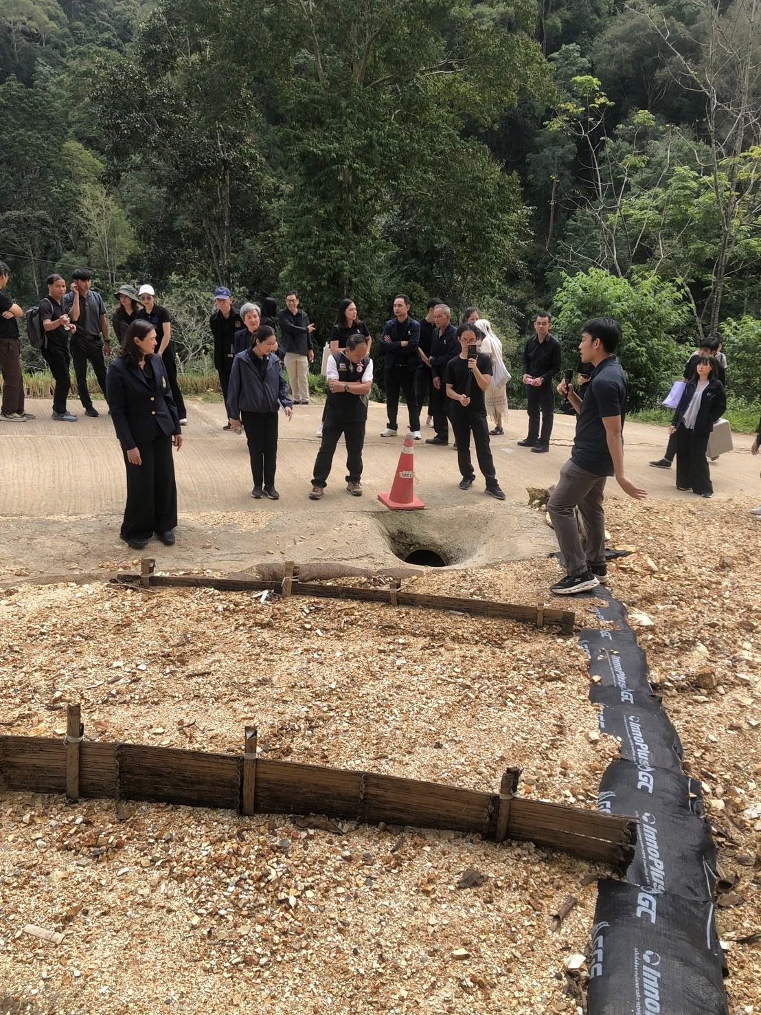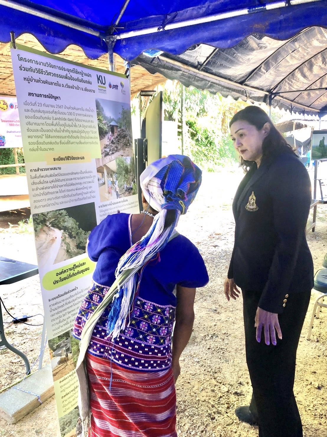 วันพฤหัสบดีที่ 13 พฤศจิกายน 2568 ระหว่างเวลา นางศศิพร ปาณิกบุตร รองเลขาธิการ กปร. พร้อมด้วยนางศิริลักษณ์ ทัสนารมย์ ที่ปรึกษาด้านการประสานงานโครงการอันเนื่องมาจากพระราชดำริ ดร.พิทยากร ลิ่มทอง อนุกรรมการด้านวิชาการและติดตามประเมินผลโครงการพัฒนาและรณรงค์การใช้หญ้าแฝกอันเนื่องมาจากพระราชดำริ และเจ้าหน้าที่จากสำนักงาน กปร. เข้าร่วมกิจกรรมเวทีคืนความรู้การประยุกต์ใช้หญ้าแฝกร่วมกับวิธีชีววิศวกรรมเพื่อป้องกันดินถล่ม ซึ่งจัดโดยสถาบันลูกโลกสีเชียว บริษัท ปตท. จำกัด (มหาชน) ณ พื้นที่บ้านห้วยหินลาดใน