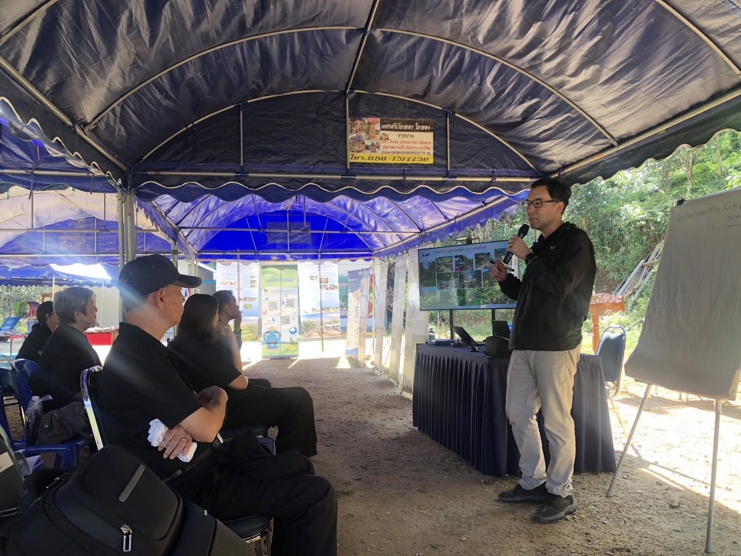 โดยมีผู้แทนจากภาคส่วนต่าง ๆ ที่เกี่ยวข้อง อาทิ นายอำเภอเวียงป่าเป้า ผู้อำนวยการสถาบันลูกโลกสีเขียว บริษัท ปตท. จำกัด (มหาชน) นายกองค์การบริหารส่วนตำบลบ้านโป่ง ผู้แทนสถานีพัฒนาที่ดินเขต 7 กรมพัฒนาที่ดิน รศ. ดร.อภินิติ โชติสังกาศ หัวหน้าคณะวิจัยจากมหาวิทยาลัยเกษตรศาสตร์ ผู้นำชุมชน และชาวบ้านในชุมชนบ้านห้วยหินลาดใน เข้าร่วมกิจกรรมฯ ด้วย